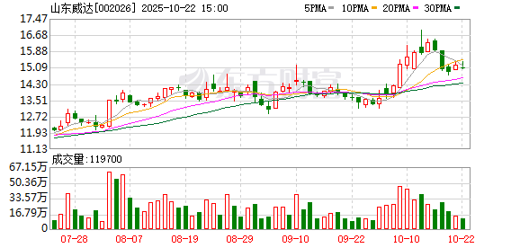 Core Viewpoint - Shandong Weida's stock price has shown significant growth this year, with a year-to-date increase of 63.83%, despite a recent decline of 2.08% on October 16 [1] Company Overview - Shandong Weida Machinery Co., Ltd. was established on July 8, 1998, and listed on July 27, 2004. The company is located in Weihai, Shandong Province [1] - The main business areas include the research, production, and sales of drill chucks, electric tool switches, powder metallurgy parts, precision castings, saw blades, machine tools and accessories, as well as intelligent manufacturing system integration and equipment [1] - The revenue composition is as follows: electric tool accessories 52.00%, other products 26.29%, powder metallurgy parts 6.90%, automation equipment 4.63%, machine tools 3.04%, others 2.86%, new energy vehicle battery swap stations 2.26%, and saw blade products 2.01% [1] Financial Performance - As of June 30, 2025, Shandong Weida reported a revenue of 914 million yuan, a year-on-year decrease of 15.37%, while the net profit attributable to shareholders was 158 million yuan, reflecting a year-on-year increase of 9.31% [2] - The company has distributed a total of 504 million yuan in dividends since its A-share listing, with 138 million yuan distributed over the past three years [3] Shareholder Information - As of June 30, 2025, the number of shareholders was 34,800, a decrease of 21.18% from the previous period, while the average circulating shares per person increased by 26.88% to 12,295 shares [2] - New institutional shareholders include博时信用债券A/B (050011) with 3.84 million shares,博时新收益混合A (002095) with 3.21 million shares, and广发中小盘精选混合A (005598) with 2.27 million shares [3]