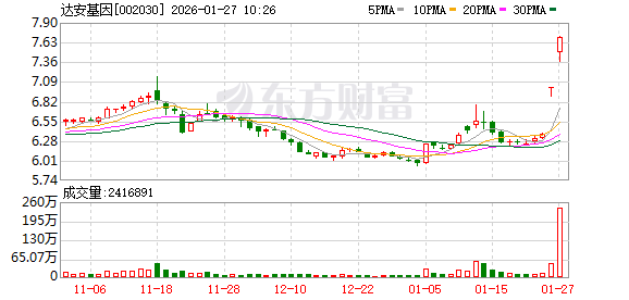 股票交易异常波动公告 本公司及董事会全体成员保证信息披露的内容真实、准确、完整,没有虚假 记载、误导性陈述或重大遗漏。 一、股价交易异常波动的情况介绍 广州达安基因股份有限公司(以下简称"公司"、"本公司"或"达安基因") 股票(证券简称:达安基因,证券代码:002030)交易价格连续 2 个交易日(2026 年 1 月 26 日、2026 年 1 月 27 日)收盘价格涨幅累计偏离 22.05%。根据《深圳 证券交易所交易规则》的有关规定,属于股票交易异常波动的情况。 二、公司关注、核实情况说明 针对公司股票异常波动情况,公司对有关事项进行了核查,并询问了公司控 股股东广州广永科技发展有限公司及间接控股股东广州金融控股集团有限公司, 有关情况说明如下: 1、公司前期披露的信息不存在需要更正、补充之处。 2、公司未发现近期有媒体报道了可能或已经对公司股票交易价格产生较大 影响的未公开重大信息。 3、公司近期经营情况正常,内外部经营环境未发生重大变化。 证券代码:002030 证券简称:达安基因 公告编号:2026-002 广州达安基因股份有限公司 三、关于不存在应披露而未披露信息的说明 本公司董事会确认,本公 ...