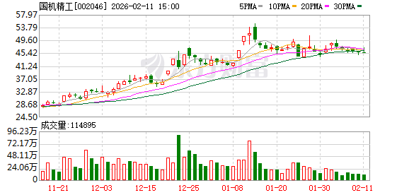 | 交易日期 | 证券代码 | 证券简称 | 成交价格 | 成交量 | 成交金额 买方营业部 | | 卖方营业部 | | --- | --- | --- | --- | --- | --- | --- | --- | | | | | (元) | (万股/万份) | (万元) | | | | 2026-02-02 | 002046 | 国机精工 | 44.99 | 22.00 | 989.78 财通证券股份有限 | | 东北证券股份有限 | | | | | | | | 公司杭州桐庐白云 | 公司杭州教工路证 | | | | | | | | 源路证券营业部 | 券营业部 | 2月2日,国机精工大宗交易成交22万股,成交额989.78万元,占当日总成交额的0.85%,成交价44.99元,较市场收盘价46.7 元折价3.66%。 ...