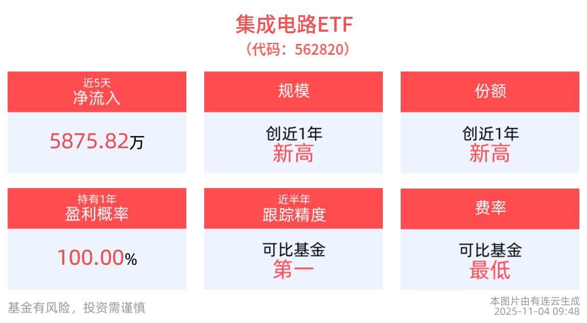 集成电路ETF(562820)红盘蓄势,最新规模、份额均创近1年新高!