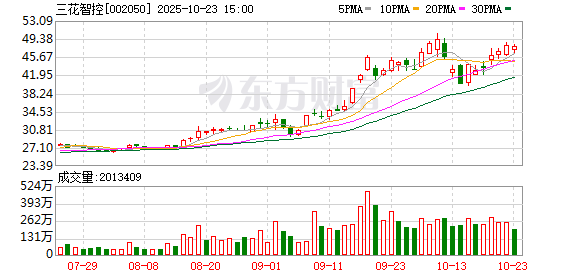 三花智控大宗交易成交5.00万股 成交额239.80万元