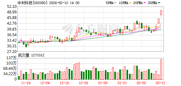 (文章来源:每日经济新闻) 每经AI快讯,2月12日,中材科技盘中涨停,涨幅为9.99%,成交额超55亿元。 ...