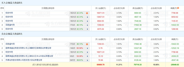 格隆汇10月28日|恒宝股份(002104.SZ)今日涨3.53%,换手率32.32%,成交额45.19亿元。龙虎榜数据显 示,深股通买入7270万元,卖出1.77亿元,净卖出1.04亿元;四家机构买入4.33亿元,卖出2.4亿元,净 买入1.93亿元;游资"中山东路"位列卖四席位,净卖出8309万元;"量化打板"位列卖五席位,净卖出 8047万元。上榜席位全天买入5.07亿元,卖出7.07亿元,合计净卖出2亿元。(格隆汇) | 买入金额最大的前5名 | | | | | | | | | --- | --- | --- | --- | --- | --- | --- | --- | | ਫ਼ਿਲੇ | 交易营业部名称 | | 英入金题(万) | 占总成交比例 | 共出会题(万) | 占总成交比例 | 净额(万)0 | | 1 | 机构专用 | 1631次 42.31% | 0 16871.91 | 3.73% | 9084.95 | 2.01% | 7786.96 | | 2 | 机构专用 | 1631次 42 31% | 13657,81 | 3.02% | 4607.18 | 1.02% | 9050 62 ...