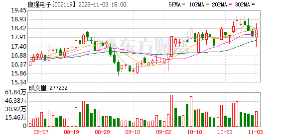 康强电子涨2.61%,成交额6.70亿元,主力资金净流出563.05万元
