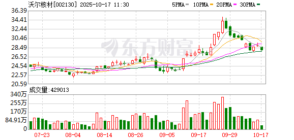 沃尔核材10月21日现1笔大宗交易 总成交金额4006.24万元 溢价率为-4.22%