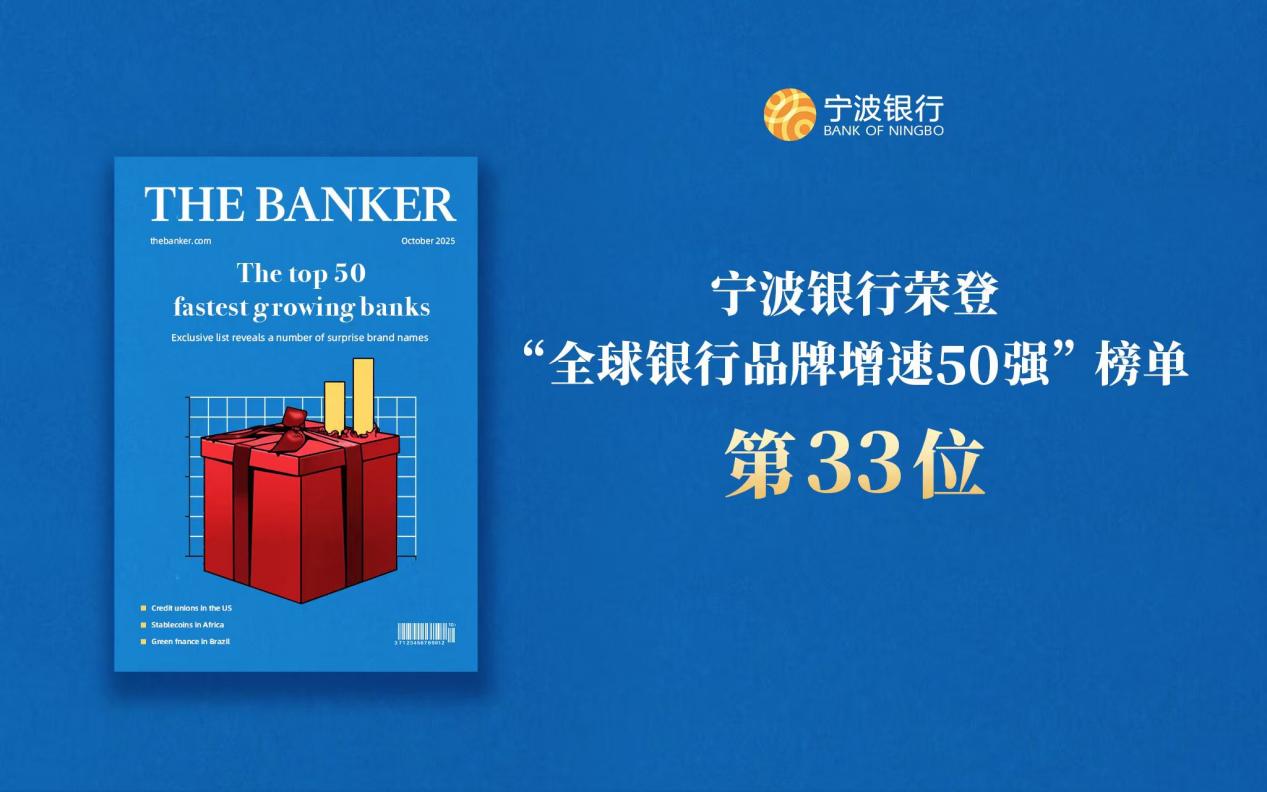 近期,英国《银行家》杂志(The Banker)在最新出版的10月刊上公布了"The top 50 fastest growing global banks"(全球银行品牌增速50强)榜单,在上榜的 50家全球银行中,宁波银行(002142)(002142.SZ)以强劲的品牌价值增速,位列第33位。 该榜单由凯度(Kantar)和英国银行家杂志联合发布,根据客户感知来评判银行在未来12个月内的品牌价值增速,是否获得了与其规模相符的良好品牌资产 得分,即该银行是否正在有效地打造其品牌。 英国《银行家》杂志是隶属于英国《金融时报》报业集团的权威性金融杂志,其发布的"全球银行1000强"榜单至今已有55年历史,是当今国际权威的全球银 行业排名之一。总部位于英国伦敦的凯度(Kantar) 是提供消费者研究、市场分析与媒体监测服务的专业公司。该榜单基于凯度对26个市场10,400名受访者的 客户调研。数据采集于2024年1月至2025年5月期间,取自每个品牌所在市场。每项研究均选取400名受访者作为样本进行访谈,所有受访者均拥有活期账户 或储蓄账户,并且了解相关品牌。 此次上榜的50家全球银行中,中资银行占位2席,除宁 ...