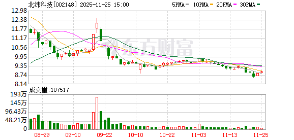 北纬科技(002148.SZ)发布前三季度业绩,归母净亏损27.54万元