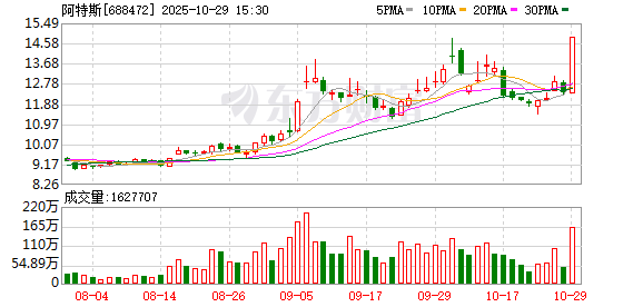 光伏设备板块午后持续拉升,阿特斯触及20cm涨停