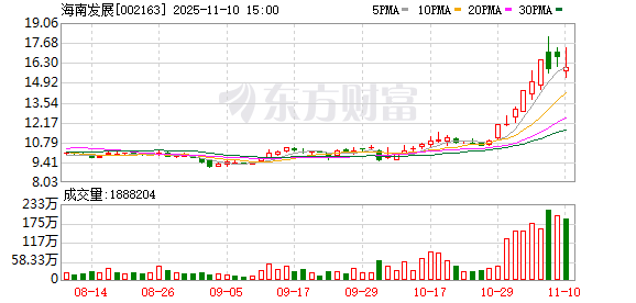 Core Viewpoint - Hainan Development's stock has shown significant volatility, with a year-to-date increase of 63.10%, but a recent decline of 8.35% over the last five trading days, indicating potential market fluctuations and investor sentiment shifts [1][2]. Financial Performance - For the period of January to September 2025, Hainan Development reported a revenue of 2.499 billion yuan, reflecting a year-on-year decrease of 10.12%. The net profit attributable to shareholders was -365 million yuan, a decline of 56.65% compared to the previous year [2]. - The company has cumulatively distributed 141 million yuan in dividends since its A-share listing, with no dividends paid in the last three years [3]. Stock Market Activity - As of November 14, Hainan Development's stock price was 15.25 yuan per share, with a market capitalization of 12.886 billion yuan. The stock experienced a trading volume of 245 million yuan and a turnover rate of 2.01% [1]. - The stock has appeared on the "龙虎榜" (Dragon and Tiger List) six times this year, with the most recent appearance on November 6, where it recorded a net buy of -19.802 million yuan [1]. Shareholder Information - As of November 10, the number of shareholders for Hainan Development increased to 147,700, a rise of 60.52%. The average number of circulating shares per person decreased by 37.70% to 5,440 shares [2]. - Among the top ten circulating shareholders, Hong Kong Central Clearing Limited holds 6.7286 million shares, an increase of 2.518 million shares from the previous period [3].