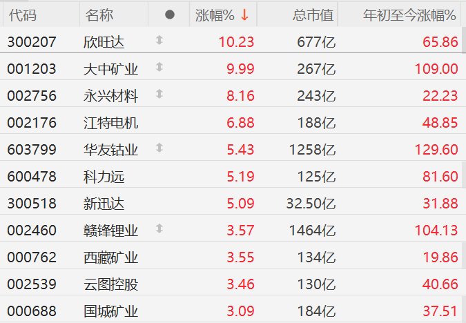 A股异动丨锂矿股连续第二日上涨,欣旺达涨超10%