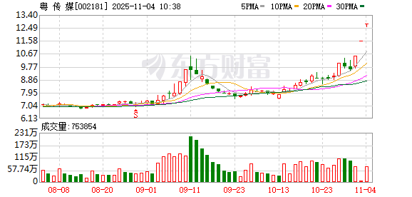 粤传媒振幅16.49%,龙虎榜上机构买入6555.13万元,卖出4875.80万元