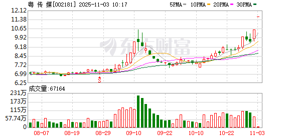 粤传媒录得5天3板