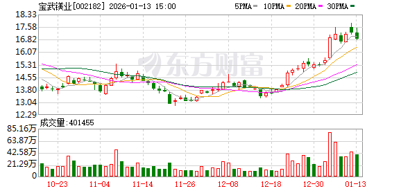Core Viewpoint - Baowu Magnesium Industry's stock has shown significant growth, with a year-to-date increase of 11.37% and a market capitalization of 16.9 billion yuan as of January 9 [1][2]. Group 1: Stock Performance - As of January 9, Baowu Magnesium's stock price reached 17.04 yuan per share, with a trading volume of 1.05 billion yuan and a turnover rate of 0.72% [1]. - The stock has increased by 11.37% this year, with a 19.75% rise over the past 20 days and a 13.60% increase over the past 60 days [1]. Group 2: Financial Performance - For the period from January to September 2025, Baowu Magnesium reported a revenue of 6.97 billion yuan, reflecting a year-on-year growth of 9.82%, while the net profit attributable to shareholders decreased by 43.13% to 87.44 million yuan [2]. - The company has distributed a total of 738 million yuan in dividends since its A-share listing, with 206 million yuan distributed over the past three years [3]. Group 3: Shareholder Information - As of December 19, 2025, Baowu Magnesium had 56,200 shareholders, a decrease of 0.88% from the previous period, with an average of 15,387 circulating shares per shareholder, an increase of 0.89% [2]. - The top ten circulating shareholders include Hong Kong Central Clearing Limited as the second-largest shareholder, holding 25.77 million shares, an increase of 13.54 million shares from the previous period [3].