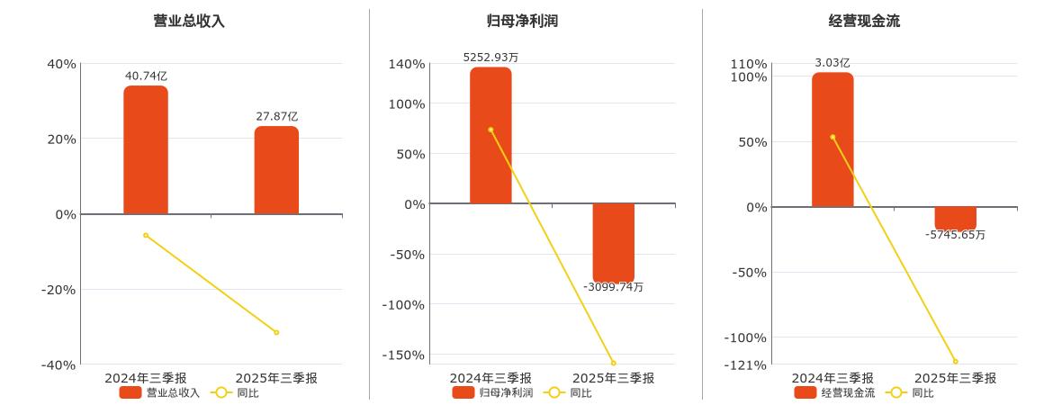 广百股份:2025年三季报净利润为-3099.74万元,同比由盈转亏