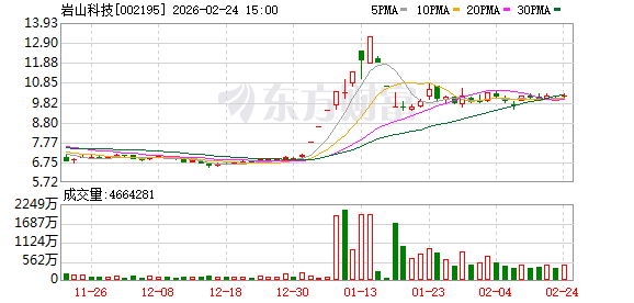 截至减持股份计划公告披露前最后一个交易日,即2026年2月12日,岩山科技收报10.18元/股,以此计 算,陈于冰本次减持金额预计为16,969.55万元,黄国敏本次减持金额预计为237.80万元。 截至目前,岩山科技副董事长、总经理陈于冰持有岩山科技股份66,678,039股,占岩山科技当前总股本 5,670,554,696股的比例为1.1759%。 中国经济网北京2月13日讯 岩山科技(002195.SZ)昨日晚间发布公告称,近日,公司收到董事、高级管理 人员陈于冰及高级管理人员黄国敏分别出具的《减持计划告知函》。 陈于冰计划在公告披露之日起15个交易日后的三个月内(即自2026年3月16日起至2026年6月15日止,根 据法律法规禁止减持的期间除外)以大宗交易和/或集中竞价方式合计减持上市公司股份不超过 16,669,500股(约占上市公司总股本比例0.2940%)。 黄国敏计划在公告披露之日起15个交易日后的三个月内(即自2026年3月16日起至2026年6月15日止,根 据法律法规禁止减持的期间除外)以大宗交易和/或集中竞价方式合计减持上市公司股份不超过233,600 股(约占上市公司总股本比例0. ...