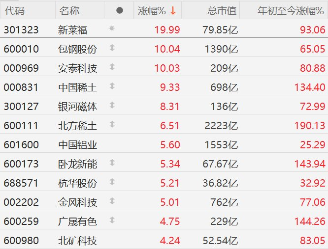 A股异动丨稀土股强势!包钢股份、新莱福2连板,安泰科技4连板