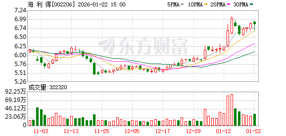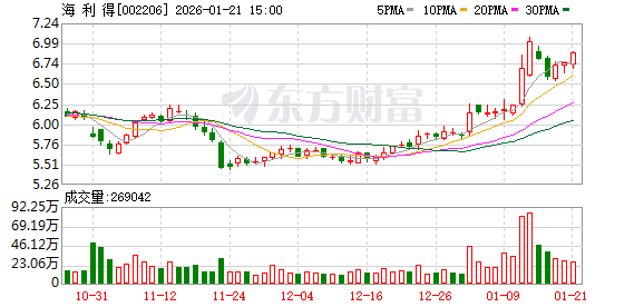 海利得(002206)披露2025年度业绩预告,1月21日股价上涨1.78%