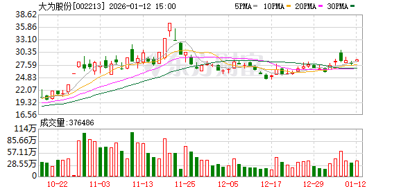 大为股份(002213)披露拟向全资子公司及孙公司增资公告,1月12日股价上涨3.5%
