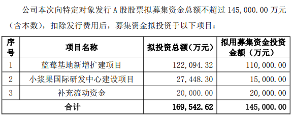 诺普信拟定增募资不超14.5亿元 用于蓝莓基地扩建、小浆果国际研发中心建设等事项