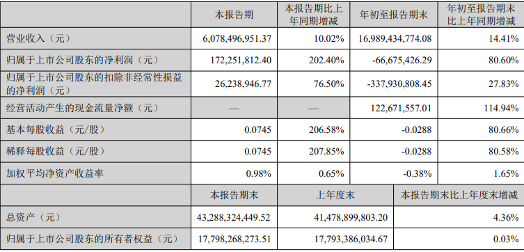 科大讯飞:第三季度归母净利润1.72亿元,同比增长202.40%