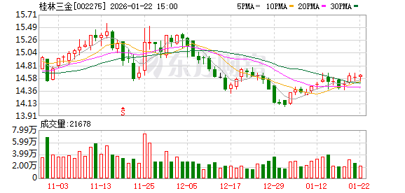 每经AI快讯,桂林三金(SZ 002275,收盘价:14.38元)12月26日晚间发布公告称,公司第九届第一次 董事会会议于2025年12月26日在广西壮族自治区桂林市临桂区人民南路9号公司办公室召开。会议审议 了《关于选举公司第九届董事会董事长的议案》等文件。 每经头条(nbdtoutiao)——对话马斯克脑机接口"一号受试者":大脑植入芯片23个月,我正重新夺回 人生的独立 (记者 曾健辉) 2025年1至6月份,桂林三金的营业收入构成为:医药占比93.72%,其他行业占比6.28%。 截至发稿,桂林三金市值为84亿元。 ...