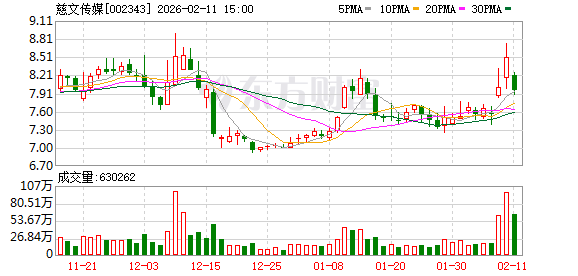 慈文传媒:截至2月10日收盘,公司股票持有人总数为53806户