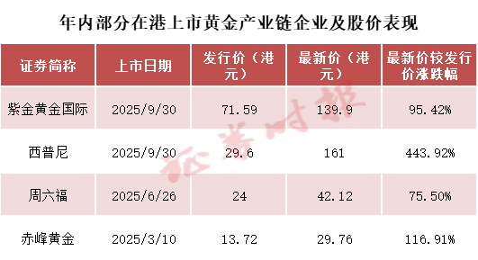 上市大涨,最高超4倍,黄金产业链狂掀港股IPO潮