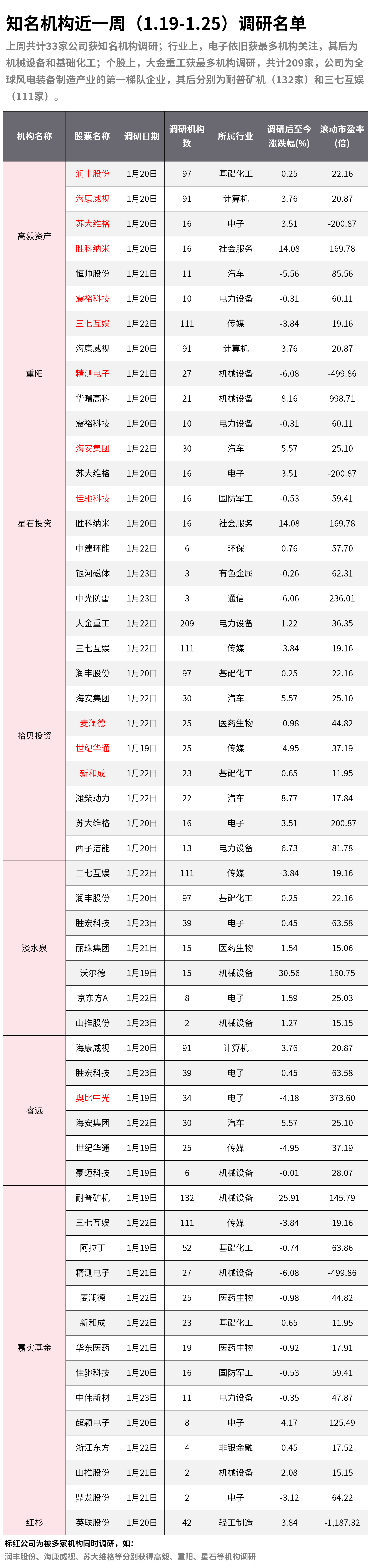 知名机构近一周(1.19-1.25)调研名单:机构扎堆这只风电龙头