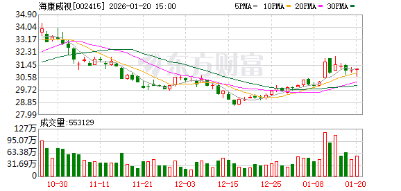 海康威视今日大宗交易平价成交85.5万股,成交额2662.47万元