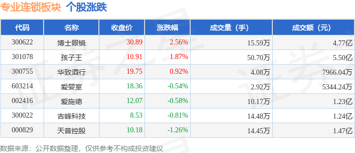 专业连锁板块11月19日跌1.67%,孩子王领跌,主力资金净流出9759.53万元