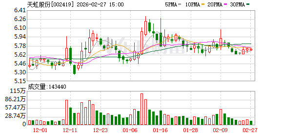 机构观点 机构对天虹股份关注度一般,最新舆情中性。根据2026年2月12日数据,机构预测2025年净利润同比增 长74.67%,主要基于门店结构优化及AI零售转型的长期逻辑。但当前市盈率(TTM)达319.15倍,估值偏 高,需警惕业绩兑现不及预期的风险。 以上内容基于公开资料整理,不构成投资建议。 股票近期走势 天虹股份近7日(2026年2月6日至12日)股价呈现震荡走势:2月6日收盘5.73元(跌1.88%),2月9日冲高至 5.91元(涨3.14%),随后2月10日至12日连续回调,截至2月12日最新价5.71元,累计跌幅2.23%。资金面 显示,2月12日主力资金净流入767.59万元,但近5日整体资金流向偏中性,换手率维持在1%-4%区间。 技术面上,20日压力位5.99元,支撑位5.63元,MACD指标偏弱,短期需关注能否突破均线阻力。 经济观察网天虹股份(002419)近7日股价呈现震荡走势,2月9日盘中异动上涨,但主力资金呈净流出 状态。 近期事件 近7天内,天虹股份的主要热点集中在2月9日的股价异动。根据新浪财经报道,2月9日公司股价盘中上 涨2.79%,报5.89元/股,成交额1.02亿元 ...