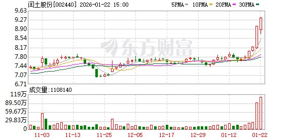 闰土股份(002440)1月22日发布2025年业绩预增公告,预计实现净利润为6.00亿元~7.00亿元,净利润 同比增长181.05%~227.89%。 证券时报·数据宝统计显示,闰土股份今日收于9.33元,上涨3.55%,日换手率为11.71%,成交额为10.07 亿元,近5日上涨21.17%。通过对2025年业绩预增50%以上的个股走势进行统计发现,预告发布后当日 股价上涨的占比63.36%,股价发布当日股价涨停的有9家。预告发布后5日股价上涨的占比75.57%。 资金面上,该股今日主力资金净流入4154.74万元,近5日资金净流入1.44亿元。最新(1月21日)两融余 额4.72亿元,其中,融资余额4.70亿元,环比前一交易日增长2.86%,近5日融资余额累计下降4.45%。 (数据宝) (文章来源:证券时报网) ...
