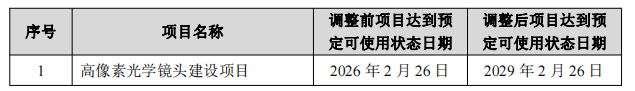 欧菲光:募集资金投资项目“高像素光学镜头建设项目”延期至2029年2月26日