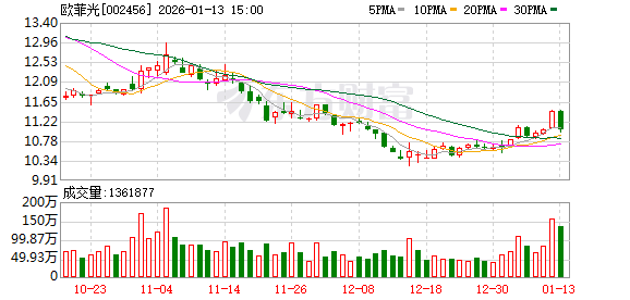 欧菲光跌3.67% 近26个月仅华龙证券一家发研报