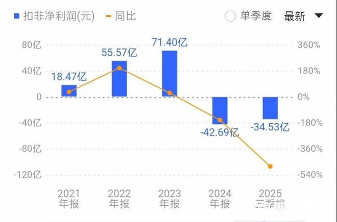 今年三季度,多家行业龙头企业成功减亏。隆基绿能(601012.SH)扣非净利润亏损11.49亿元,同比略 微减亏4.65%;通威股份(600438.SH)亏损4.42亿元,同比减亏48.53%;东方日升(300118.SZ)亏损 3.54亿元,减亏47.29%。 当然,同样有一些头部企业,业绩继续大幅下滑。例如,晶澳科技(002459.SZ)2025年第三季度实现 营业收入129.04亿元,同比减少24.05%;扣非净利润为-11.65亿元,同比减少619.16%。公司前三季度营 收为368.09亿元,同比下降32.27%;扣非净利润-34.52亿元,降幅480.95%。 晶澳科技扣非净利润走势。图源同花顺 环比观察,公司第二季度营收、扣非净利润分别为132.32亿元、-8.81亿元。以此对比,其营收、利润降 幅依旧在扩大。三季报解释称,营收下降主要系"本期受市场竞争环境影响,单瓦价格与出货量较上年 同期下降"。 近年来,光伏行业"反内卷"力度逐步加强,《光伏制造行业规范公告管理办法》、《反不正当竞争法》 等法律法规相继落地,工信部、光伏行业协会等亦积极召开座谈会,治理低价无序竞争、推动落后产能 退出。 早在 ...