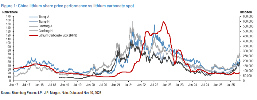 摩根大通扭转对锂业看空立场储能,称此前严重低估了储能市场的爆发性需求。 据追风交易台,摩根大通在最新中国锂行业报告中,罕见地承认了此前的误判,并宣布将天齐锂业和赣锋锂业的评级从"减持"上调至"中性"。 此举标志着摩根大通对锂市场基本面的重大修正,摩根大通表示,核心在于此前严重低估了储能(ESS)市场的爆发性需求。另一方面,供应或持续吃 紧,宁德时代矿山复产不足以扭转乾坤。 摩根大通预计,全球锂市场在2025和2026年仍将面临供应缺口。这一判断迫使该行将2026年锂价预测从人民币7万元/吨大幅上调至9万元/吨,涨幅近 30%。 反思与认错:储能需求是关键驱动力 摩根大通在此次评级调整中坦率地复盘了其先前的看空立场。报告承认,尽管宁德时代矿山复产等因素对供需平衡构成负面影响,但储能需求的激增是更 强劲的股价驱动因素,足以扭转市场预期。对于预计将出现的供应缺口而言,仅靠现有项目的复产或增产已远远不够。 我们深入审视了此前的'减持'评级并得出结论:储能需求的激增是更强的股价驱动因素。尽管宁德时代的矿山重启对供需平衡是负面的,但对 于预计出现的市场短缺而言,可能需要更多的产能爬坡/重启。因此,我们终止对赣锋锂业A/H ...