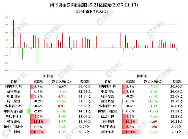 图解丨南下资金净买入阿里、小米,净卖出腾讯