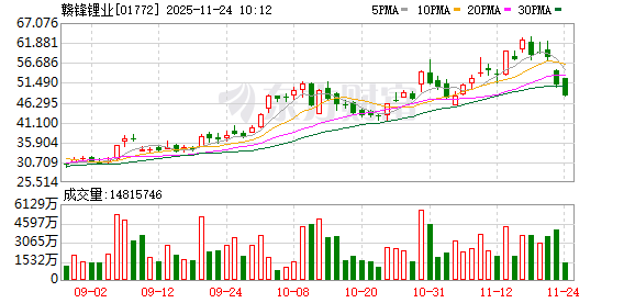 赣锋锂业早盘跌超5% 锂现货价格或面临下行风险 高盛下调公司至“卖出”评级