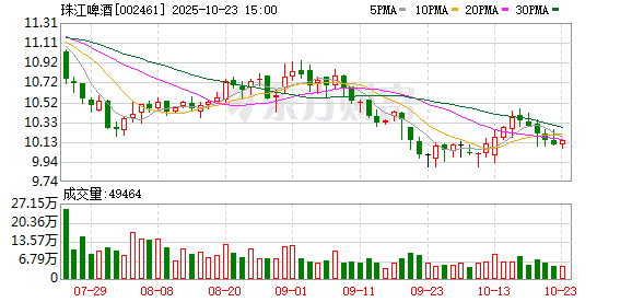 每经AI快讯,珠江啤酒(SZ 002461,收盘价:10.14元)10月23日晚间发布三季度业绩公告称,2025年 前三季度营收约50.73亿元,同比增加3.81%;归属于上市公司股东的净利润约9.44亿元,同比增加 17.05%;基本每股收益0.4265元,同比增加17.04%。 截至发稿,珠江啤酒市值为224亿元。 每经头条(nbdtoutiao)——四次登上央视,知名大佬"消失"5年,我们在水果仓库找到了他!从月薪 5000到千亿市值公司联席总裁,他45岁再创业 (记者 王瀚黎) ...