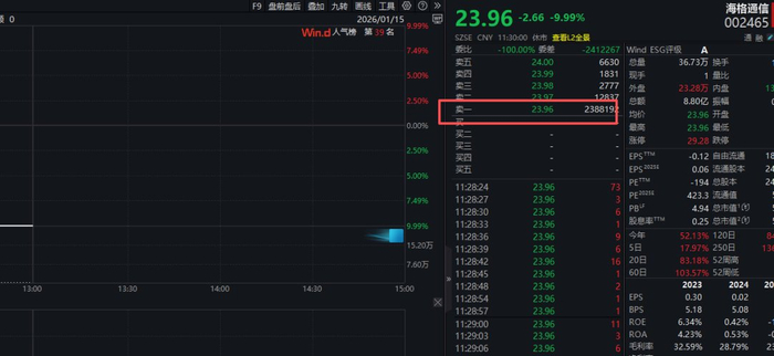海格通信、岩山科技等大牛股现超10亿元巨量卖单