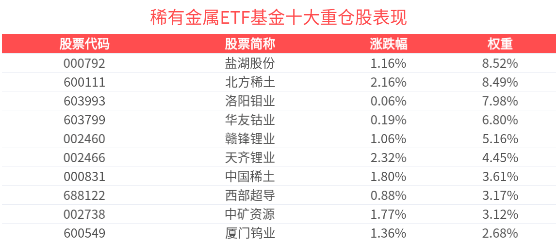 稀有金属板块配置价值凸显,稀有金属ETF基金(561800)早盘冲高涨近2%,成分股盛新锂能10cm涨停