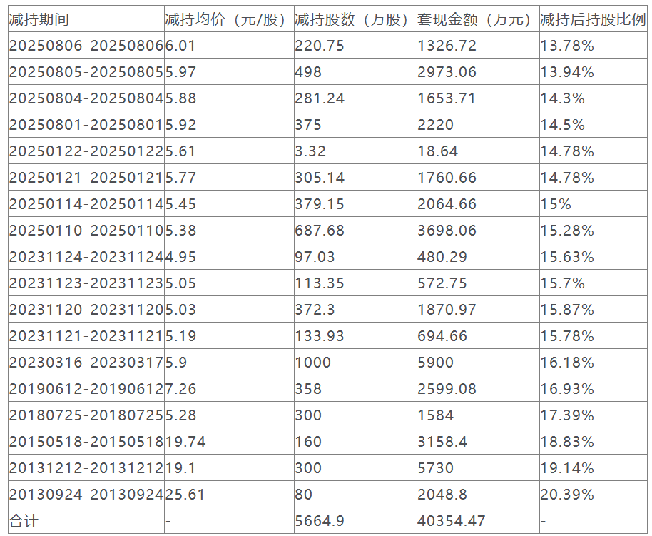 中国经济网北京11月17日讯二六三(002467)(002467.SZ)于11月14日晚间发布关于控股股东减持公司股份的预披露公告。 公司于近日收到控股股东李小龙出具的《股份减持计划告知函》,李小龙因个人资金需求,拟通过集中竞价交易方式减持公司股 份不超过13,753,718股(占公司总股本的1%)。减持期间为公告之日起十五个交易日后的3个月内(即2025年12月6日至2026年3月5 日),在减持计划期间如遇法律法规规定的窗口期则不减持。 二六三表示,本次减持计划的实施不会对公司治理结构及持续经营产生影响,也不会导致公司控制权发生变更,公司基本面未发 生重大变化。请广大投资者注意投资风险。 截至公告披露日,李小龙持有公司股份189,471,241股,占公司总股本的13.78%,为公司控股股东、实际控制人。 按照二六三11月14日的收盘价6.47元测算,李小龙本次套现金额约合8898.66万元。 新浪财经的数据显示,李小龙最初持股4973.34万股,占总股本的20.72%。李小龙从2013年9月24日起,第一次减持二六三股份, 迄今为止,累计减持公司股票5664.9万股,累计套现约4.04亿元。 | 减持期间 ...
