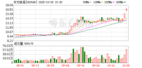 (文章来源:证券日报) 证券日报网讯 10月28日晚间,东方铁塔发布公告称,公司股票于2025年10月24日、2025年10月27日、 2025年10月28日连续三个交易日内日收盘价格涨幅偏离值累计达到20.82%,属于股票交易异常波动。 经核查,公司前期已经披露的信息不存在需要更正、补充之处;公司近期未发现公共传媒报道了可能或 已经对公司股票交易价格产生较大影响的未公开重大信息。 ...
