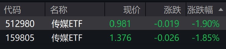 传媒概念股早盘走弱,传媒ETF跌近2%