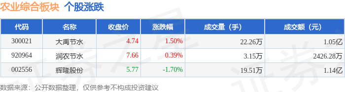 农业综合板块10月31日跌0.35%,辉隆股份领跌,主力资金净流出673.16万元