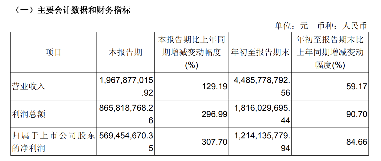 | 项目 | 本报告期 | 本报告期比上年同 | | 年初至报 | | --- | --- | --- | --- | --- | | | | 期增减变动幅度 | 年初至报告期末 | 上年同期 | | | | (%) | | 幅度 | | 营业收入 | 1.967.877.015 | 129.19 | 4.485.778.792. | | | | .92 | | 56 | | | 利润总额 | 865.818.768.2 | 296.99 | 1.816.029.695. | | | | ଚ | | 44 | | | 归属于上市公司股东 569,454,670.3 | | 307.70 | 1.214.135.779. | | | 的净利润 | 5 | | 94 | | "爆款"是部分公司翻盘关键,业绩和股价一同攀升。 10月29日,游戏股吉比特(603444.SH)开盘涨停,截至发稿报503.95元/股,总市值363.1亿元,今年已然翻倍。 吉比特在A股市场有"游戏茅"之称,就在28日刚刚公布了2025年三季报,在业绩连续下滑两年后成功翻身,今年第三季度公司营收近19.7亿元,同比增长129 %;归母净利润 ...