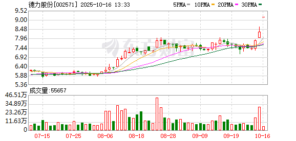 每经AI快讯,10月17日,德力股份(002571)直线拉升封板,该股此前"天地板",盘中上演"天地天", 成交额近6亿元。 ...