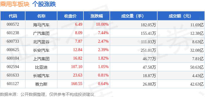 汽车行业资金流入榜:长安汽车等10股净流入资金超亿元
