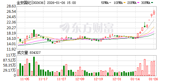 (编辑 丛可心) 证券日报网讯 1月25日,金安国纪发布公告称,公司股票于2026年1月21日、1月22日、1月23日连续三 个交易日收盘价格涨幅偏离值累计达到20%,根据深圳证券交易所的有关规定,属于股票交易异常波动 情况。公司董事会确认,除公司正在筹划2025年度向特定对象发行A股股票事项外,公司目前没有任何 根据深圳证券交易所《股票上市规则》等有关规定应予以披露而未披露的事项或与该事项有关的筹划、 商谈、意向、协议等;董事会也未获悉公司有根据深圳证券交易所《股票上市规则》等有关规定应予以 披露而未披露的、对本公司股票及其衍生品种交易价格产生较大影响的信息;公司前期披露的信息不存 在需要更正、补充之处。 ...