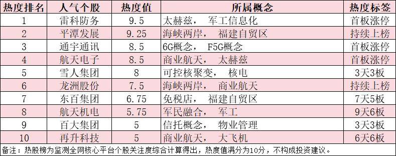 今日十大热股:SpaceX上市计划引爆产业链,商业航天题材霸榜资金热度